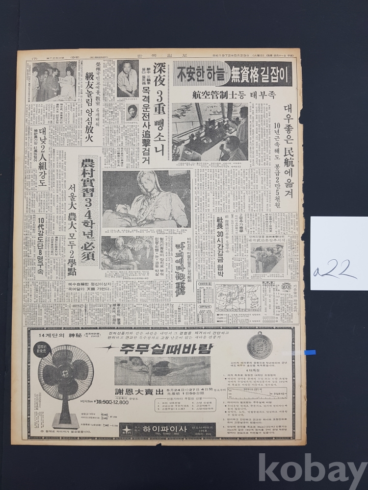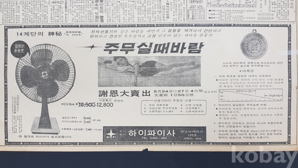 **** 한국일보/1972년 6월 23일/2면*주무실때바람 주식회사 하이파이사