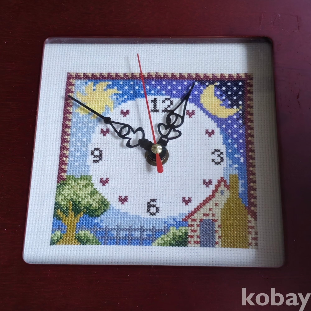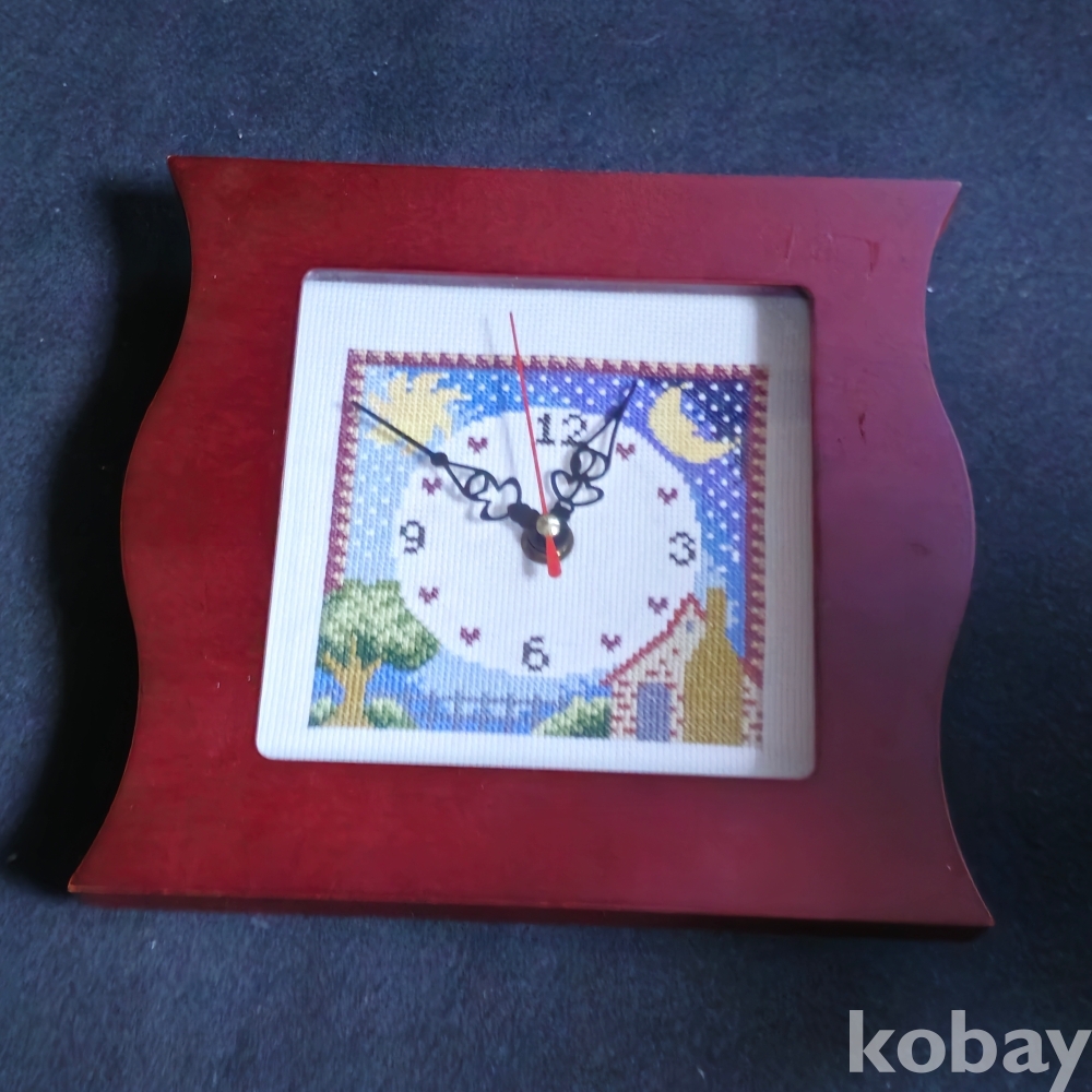 (((자수벽시계))) 오래전 정상작동하는 자수 벽시계