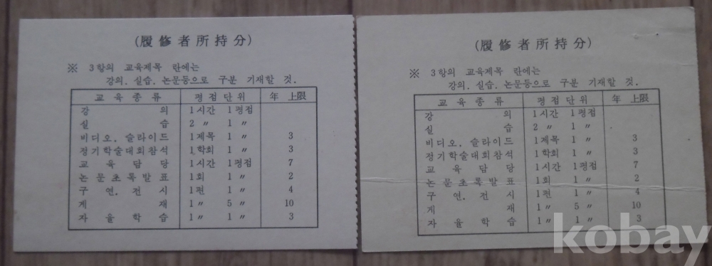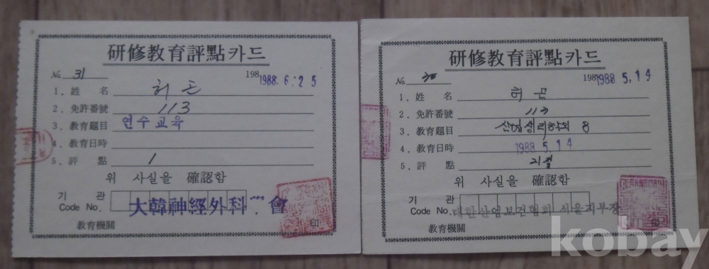 1988년 대한신경외과학회 연수교육평점카드 2종