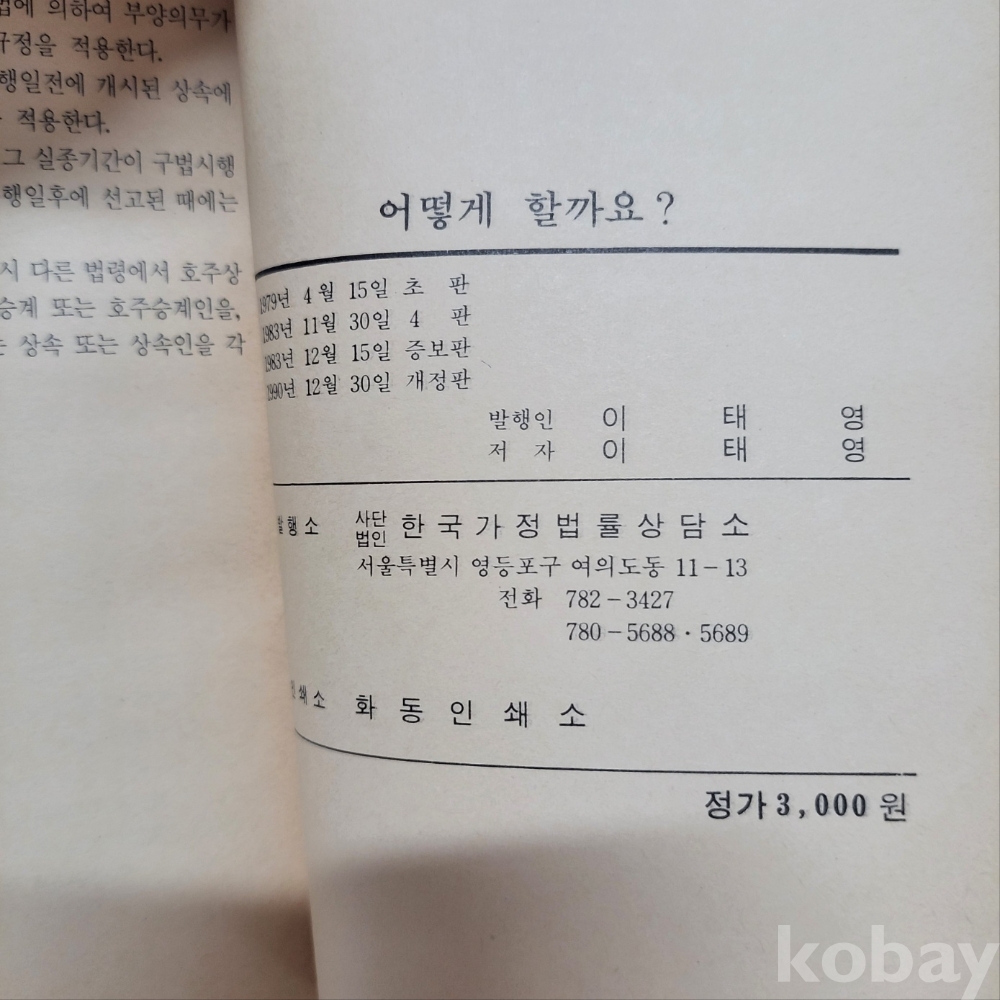 [천원경매] 어떻게 할까요? 1990년 발행~~ 가정법률상담사례집