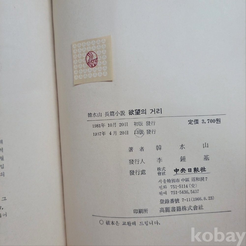 중급 : 표지없음/ 바램/ 필기낙서/ 직인/ 갈리짐
