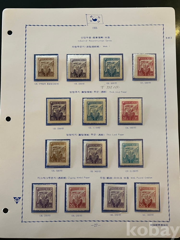 발형박지 (얇은 줄무늬 투문용지) 우표 상단 <대한민국 우표> 표기와 색상 확인 부탁드립니다.