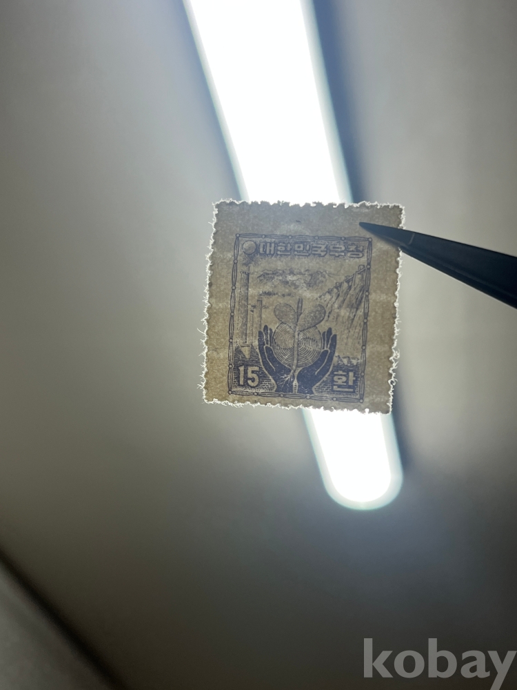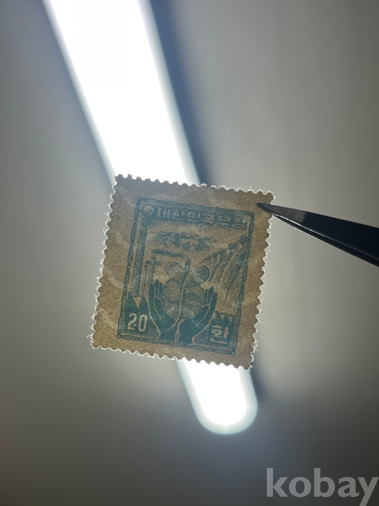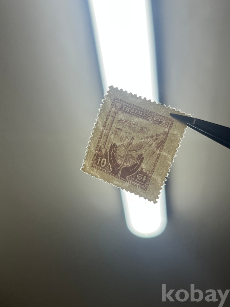 발형후지 (두꺼운 줄무늬 투문용지) 우표 상단 <대한민국 우정> 표기와 색상 확인 부탁드립니다.