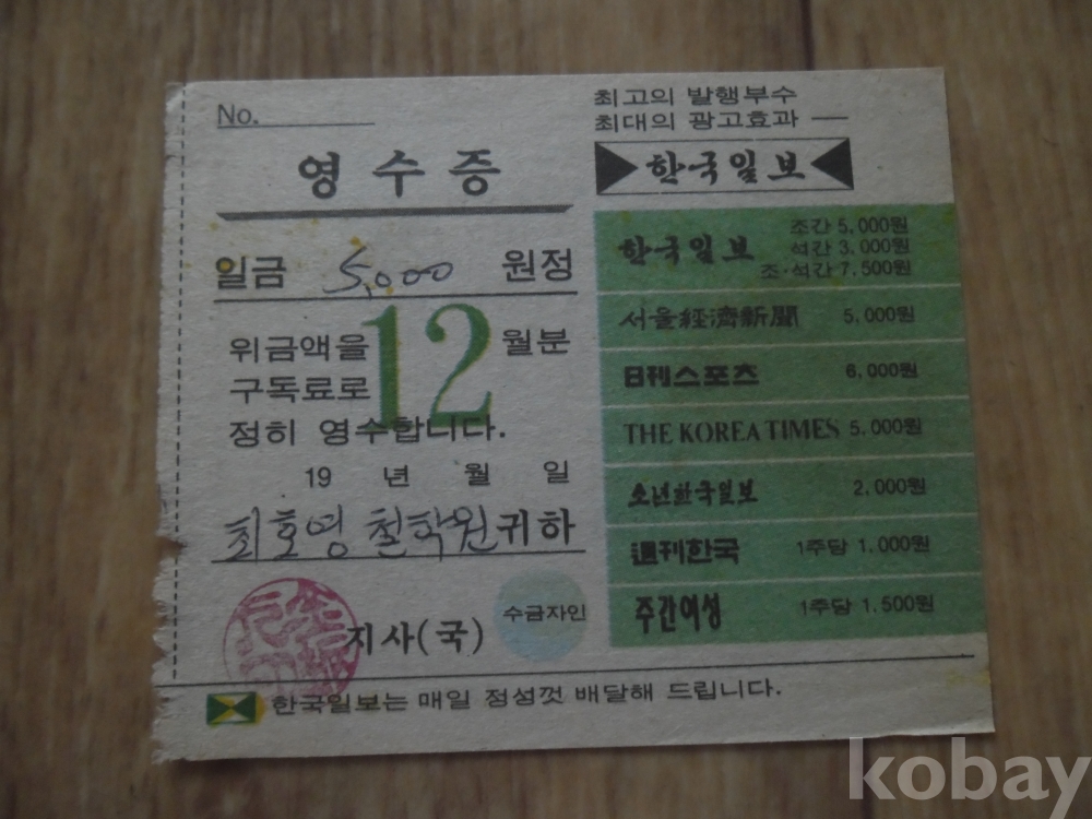 영수증신청 : 수령확인시에 개인소득공제용 또는 사업자회원님의 지출증빙용(세금계산서대체)으로 신청하실 수 있습니다.