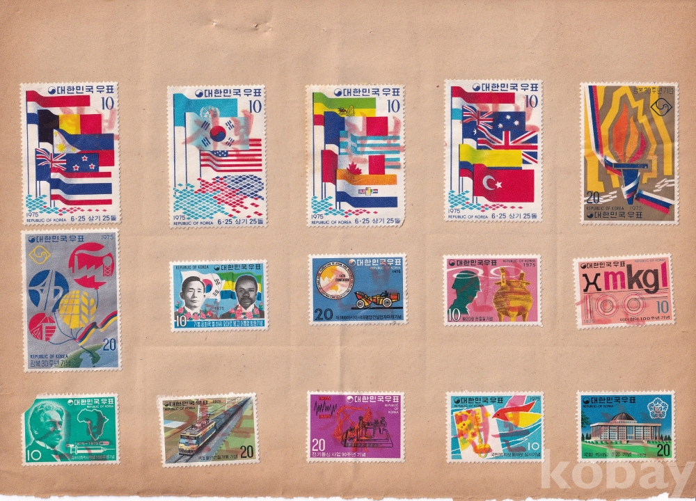- 중복 되는 우표 없이 15장 견본 우표가 부착되어 있습니다.