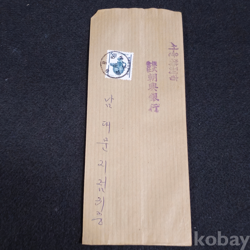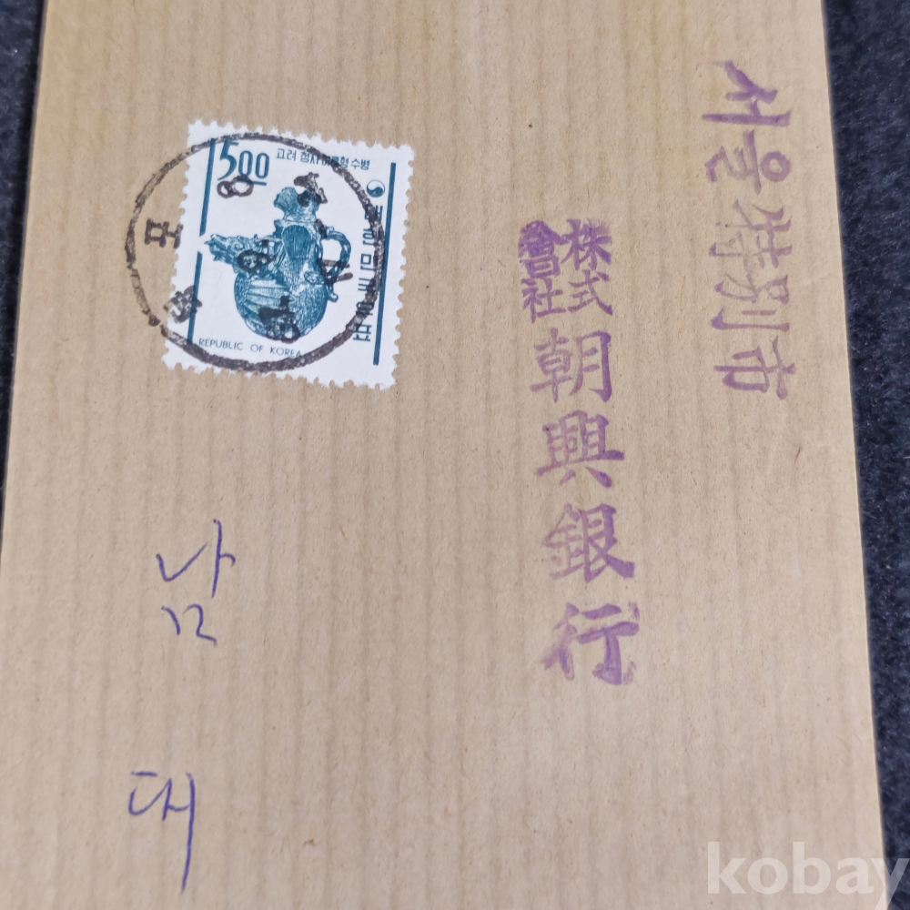 (((우취자료/은행자료/근현대사자료))) 조흥은행에서 발송한 1967년 (고려청자어룡형 수병 5원) 소인찍인 실체봉투