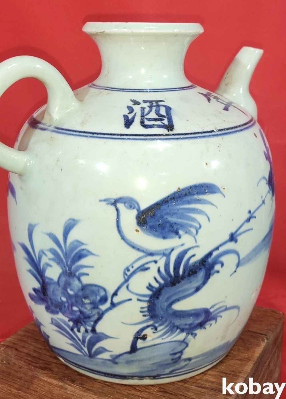 쉰일곱번 //// 청대 진품 진곡연주(陣谷年酒) 청화 꽃과새(花鳥)문양 큰 주전자입니다