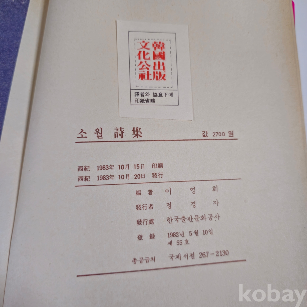 (((천원경매))) (((서적))) 신앙처럼 기도처럼 절규한 소월의 숨결 - 소월 詩集 - 이영희 편 (1983년 발행)