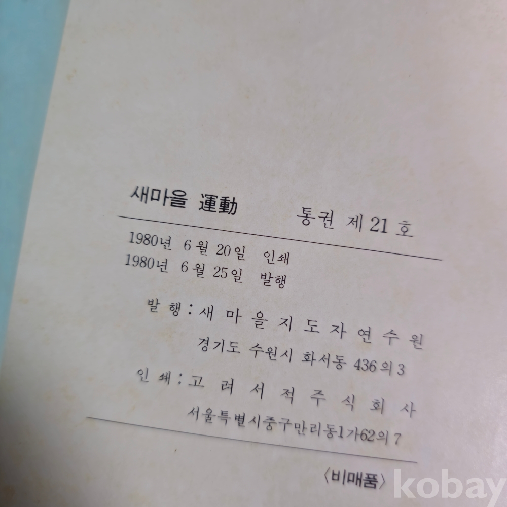 (((근현대사자료/서적))) 새마을운동- 새마을지도자연수원 (1980년발행/비매품)
