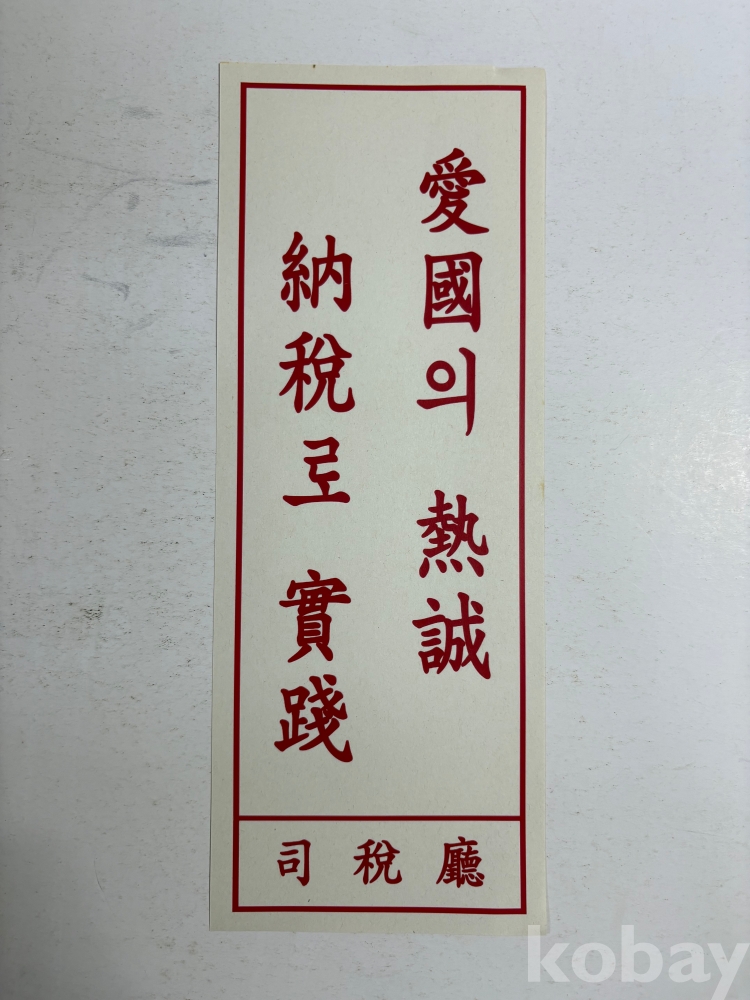 애국의 열성 납세로 실천(굵은 글씨) -발행처(사세청)