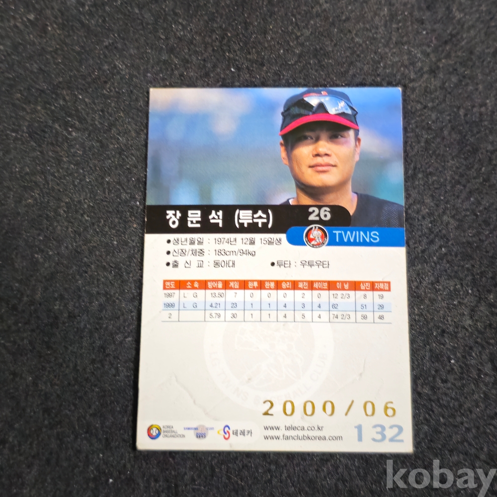​​​​(((프로야구자료))) 1999년 엘지트윈스 투수 장문석 스포츠 카드 (KBO/TELECA)