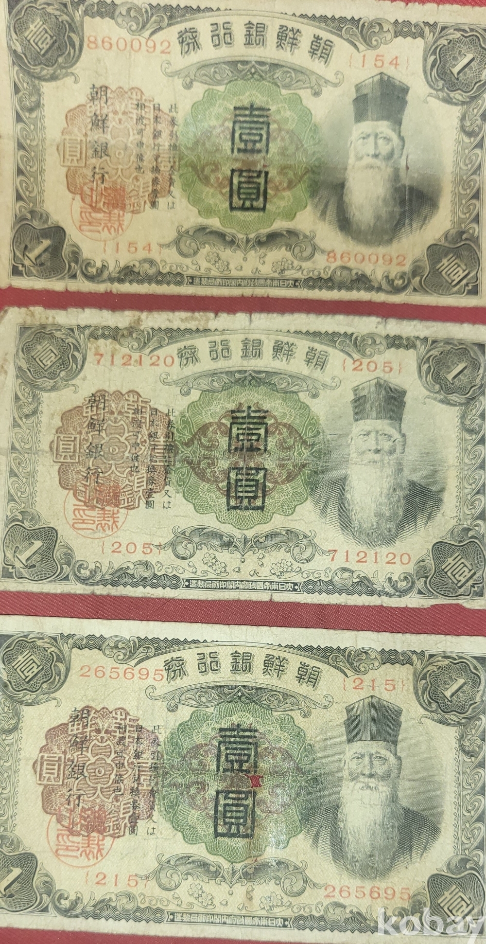 조선은행권 일원짜리 지폐 3장 일괄입니다,