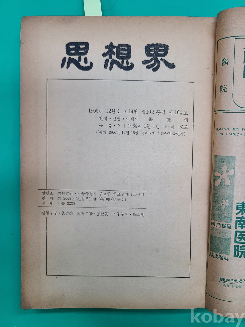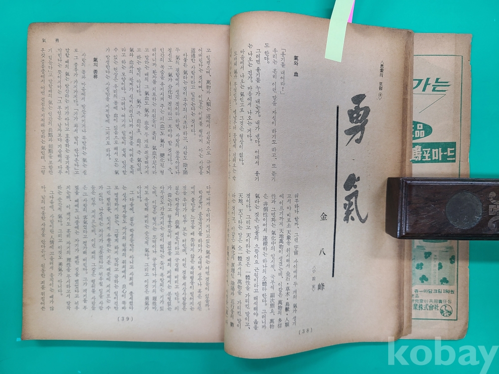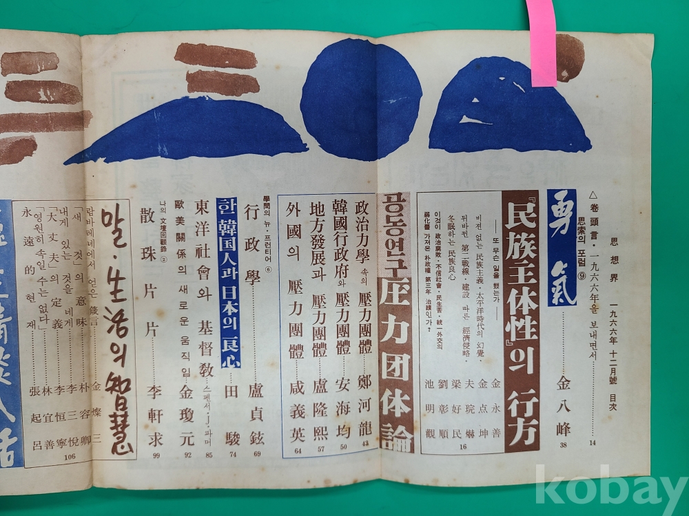 金八峰(김기진)의 글 “勇氣”가 실린 思想界 1966년 12월호 1966년12월1일. 사상계사. 212쪽