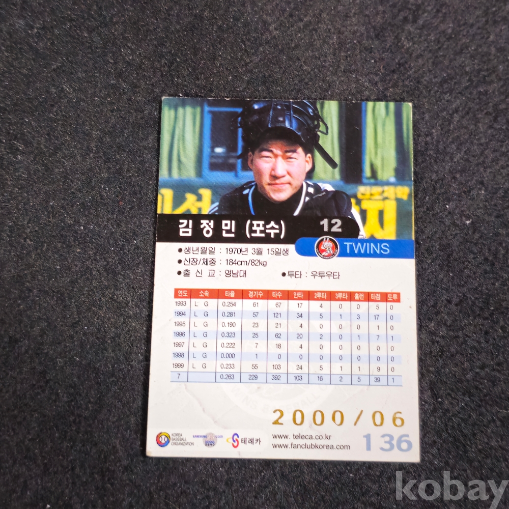 (((프로야구자료))) 1999년 엘지트윈스 포수 김정민 스포츠 카드 (KBO/TELECA)