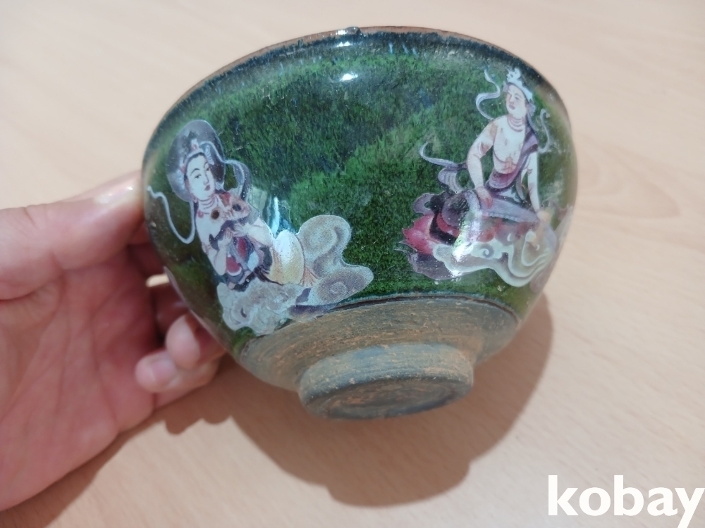 각기 다른 6 인물 표현이 있는 다완 도자기 입니다.