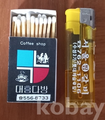 상태는 사진에 보시듯 일체 흠없이 깨끗합니다. . 통속에는 잔량의 성냥알도 그대로이고.. 인테리어, 소품, 장식용으로 좋을것 같읍니다. 특히 옛날 다방버전의 실내장식에는.. 요즘 늘어나는 카페용품에도 좋겠지요 함께 촬영한 일회용 라이타는 크기비교를 위한것으로 함께 가지는 않읍니다