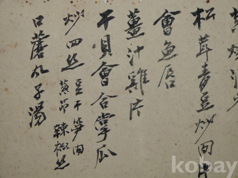 본 작품은 본격적인 서예작품이 아닌 음식메뉴 등 잡기((雜記) 서예입니다.