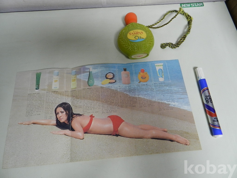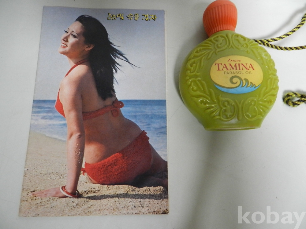 미국의 무기 로비스트로 유명했던 린다 김 아모레 화장품 모델 시절의 홍보 리플릿 과 여름 바다에서 목에 걸고 다니며 바르던 타미나 파라솔 오일 입니다 내용물 남아 있네요 사태 이미지 처럼 양호 이미지 참고 바랍니다