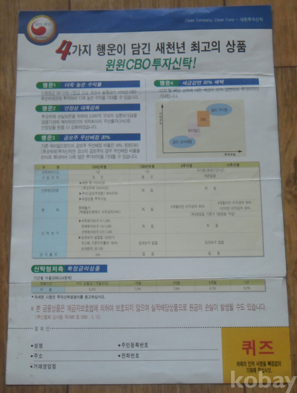 2000년 대한투자신탁 사은대축제 안내 리플릿