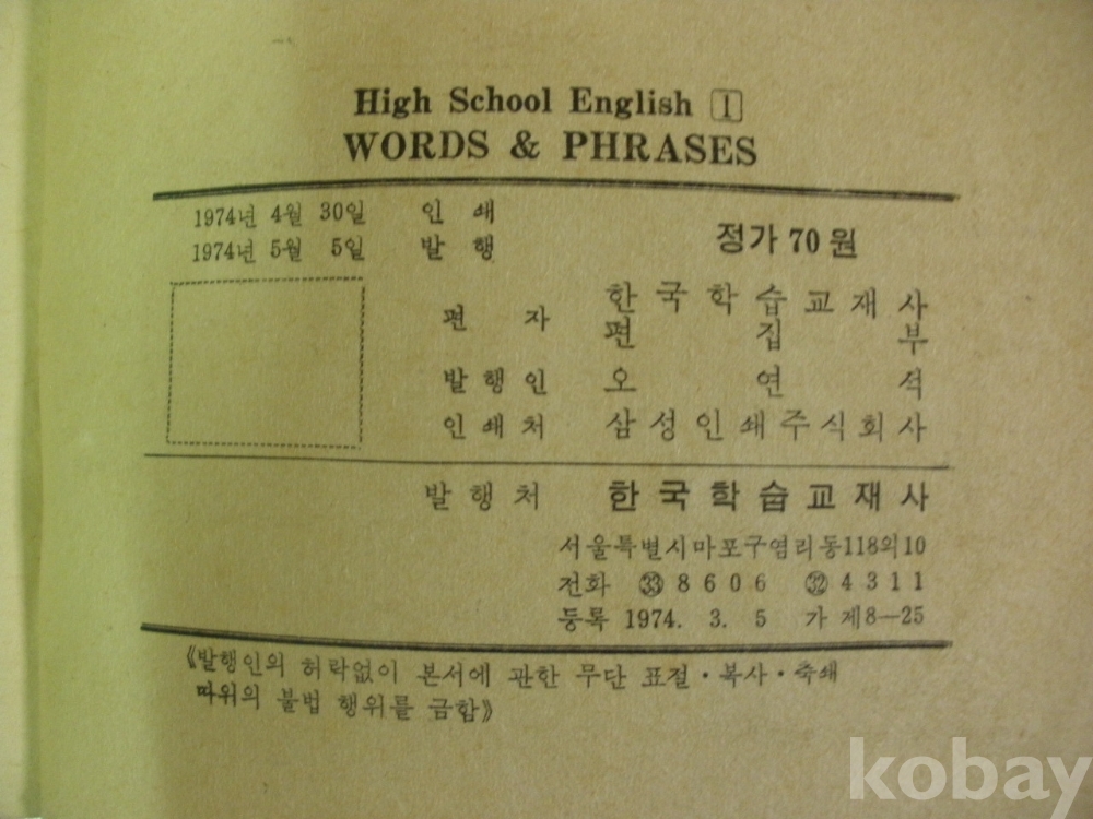 (고등학교) 영어 1 - 단어 및 숙어 (1974년, 한국학습교재사)