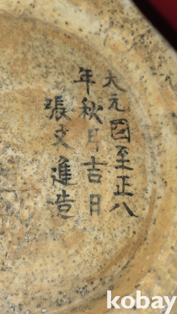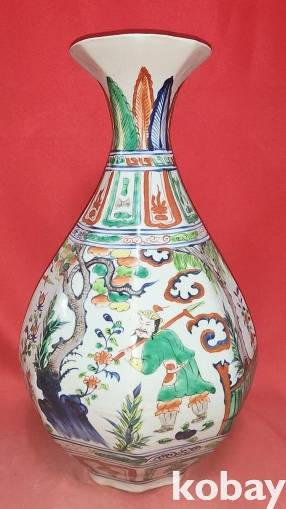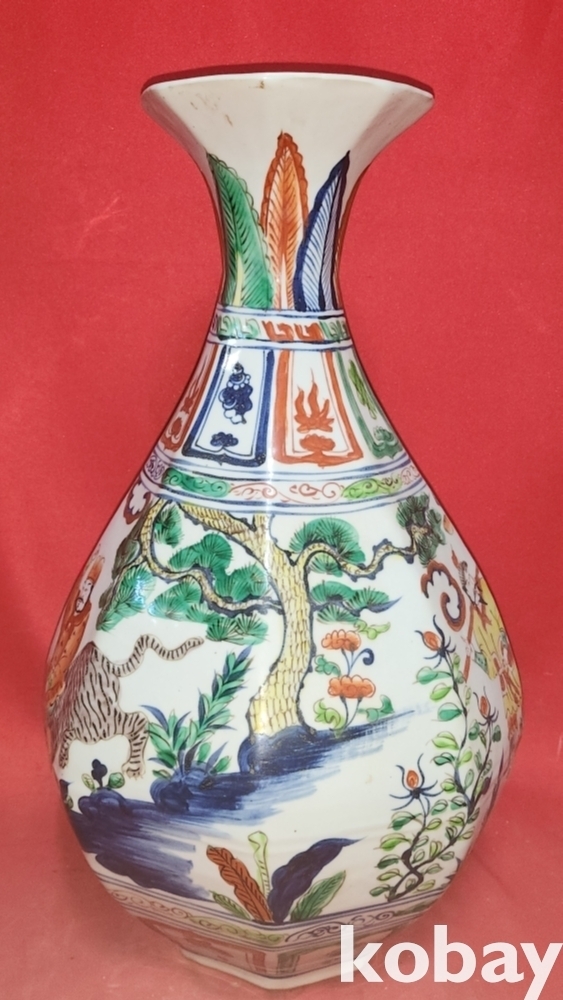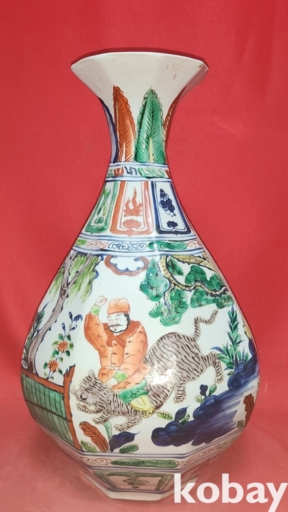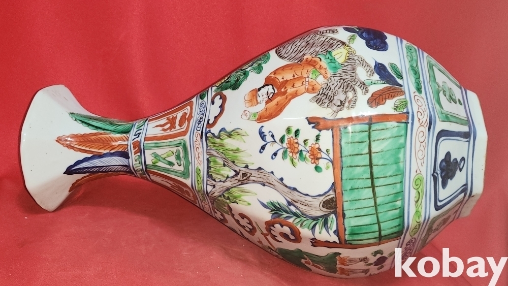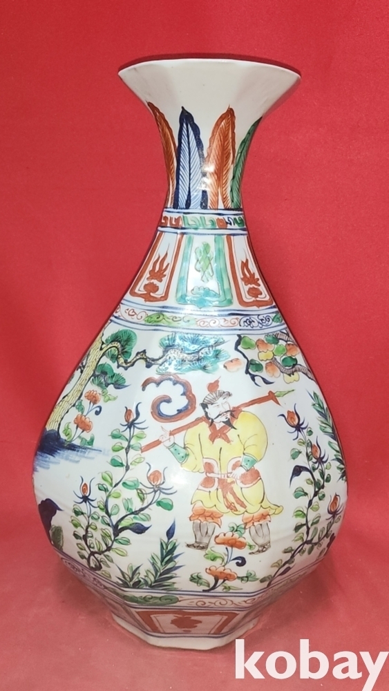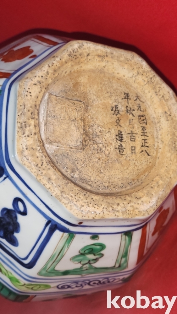 대원국지정8년 추월길일 장문진 조(張文進 造) 관지 오채 귀곡자하산도문양 양이(兩耳) 8각 천구병입니다,