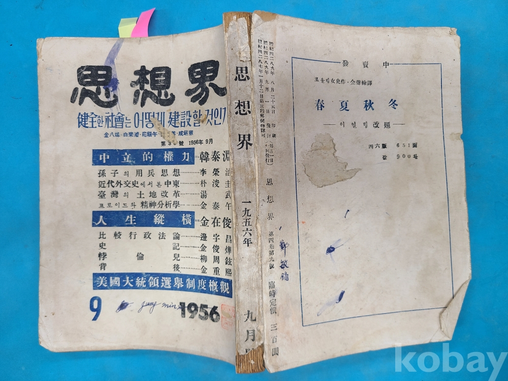 1956년 9월호 1956년9월1일. 사상계사. 310쪽