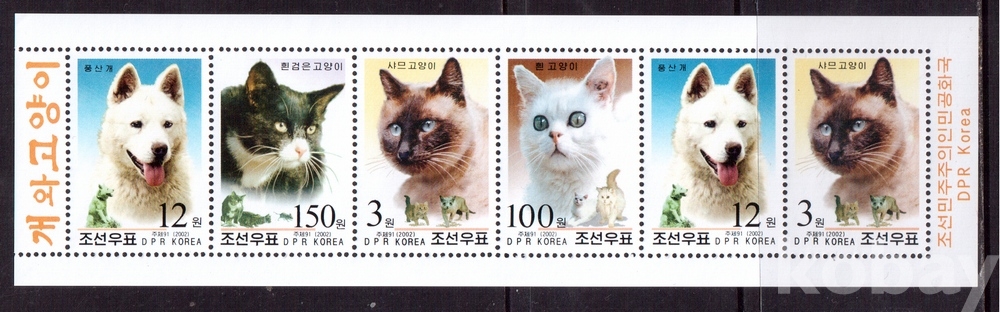 (동물) 북한 2002.10.20 개와 고양이 booklet pane of 6 MNH