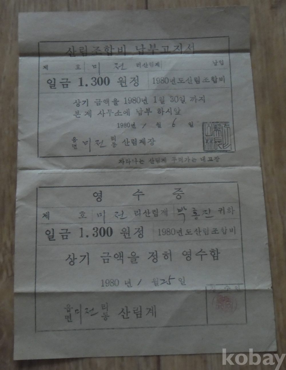 1980년 산림조합비 납부고지서(영동)