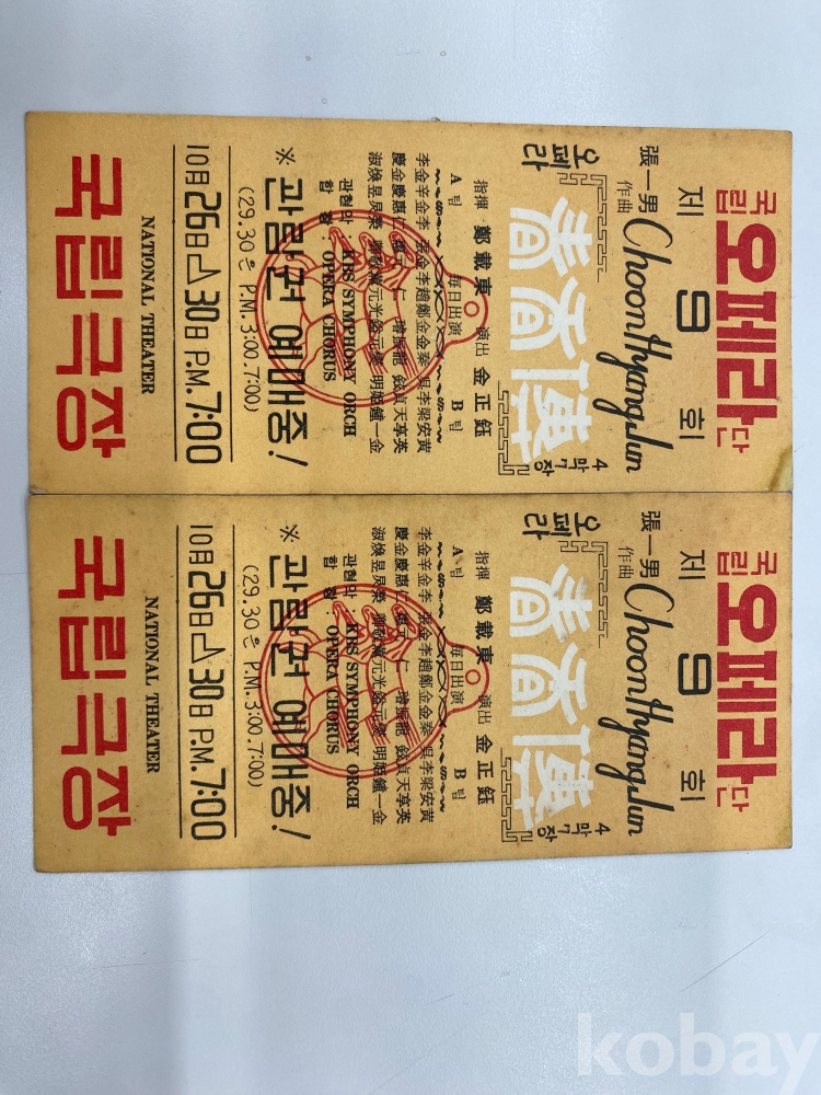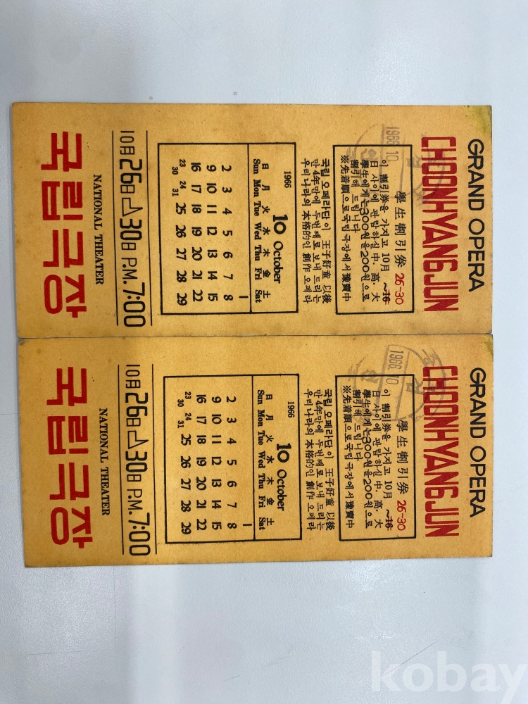 1966년 국립오페라단에서 최초의 창작 오페라로 연출된 <춘향전> 극장표 입니다.