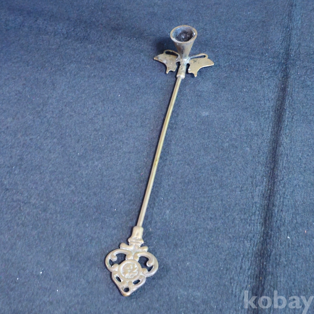 (((근현대사자료))) 오래전 놋쇠로만든 壽福 양각 촛불끄는 나비촛대