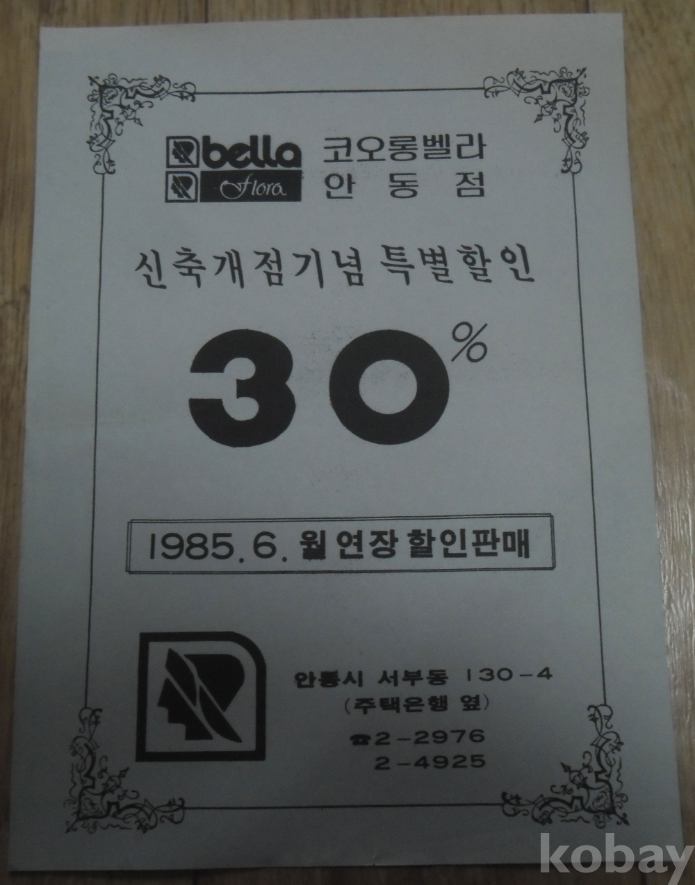 옛 전단지: 1985년 코오롱벨라 안동점 할인판매(안동)