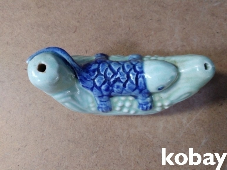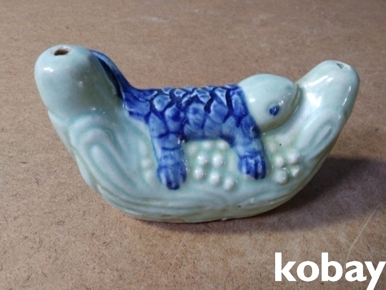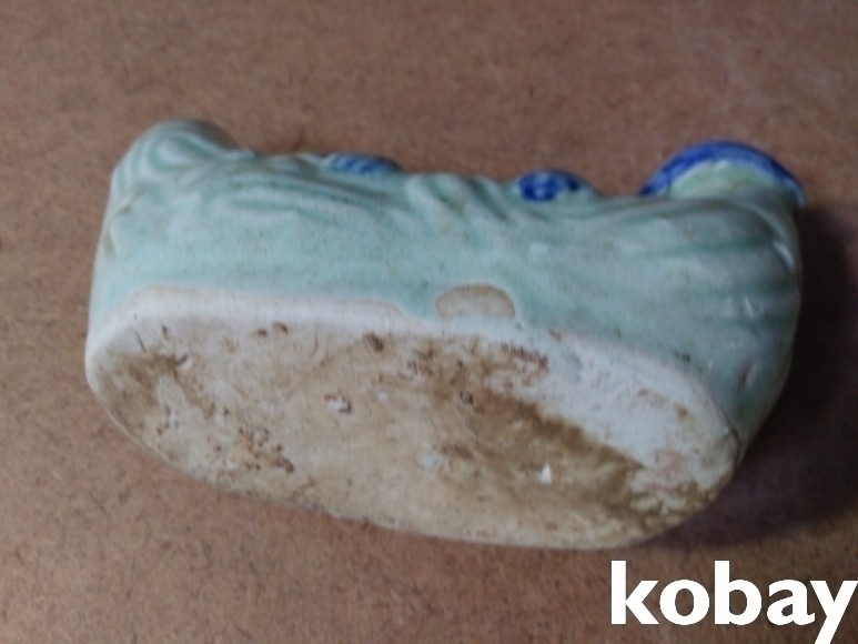열매 위에 동물이 있는 도자기 연적 입니다.