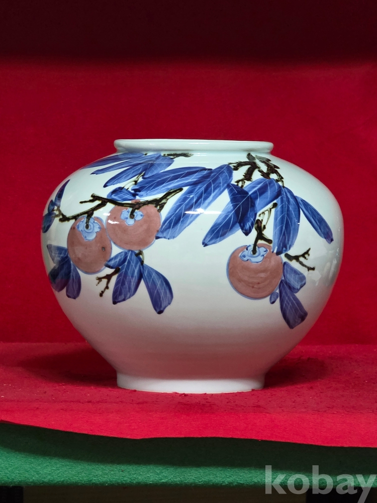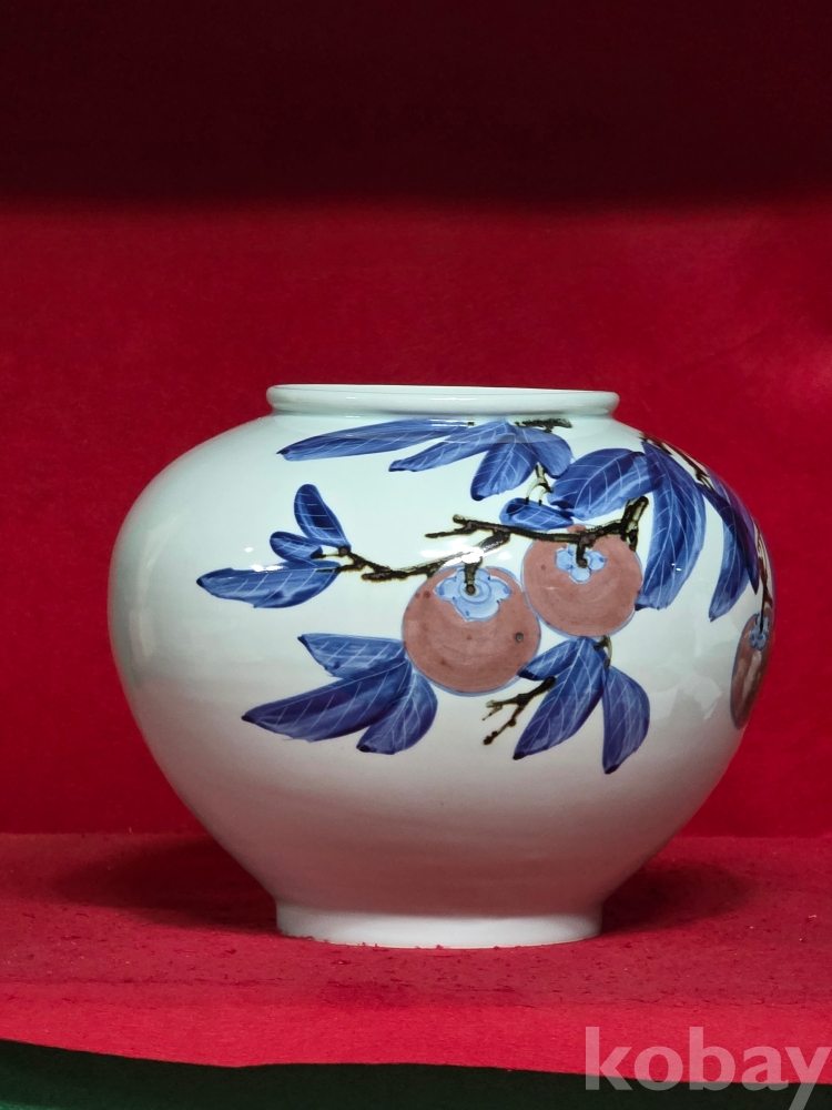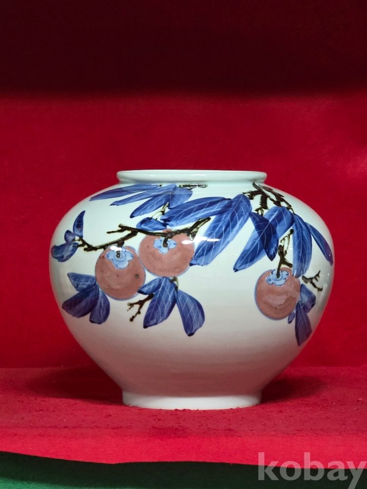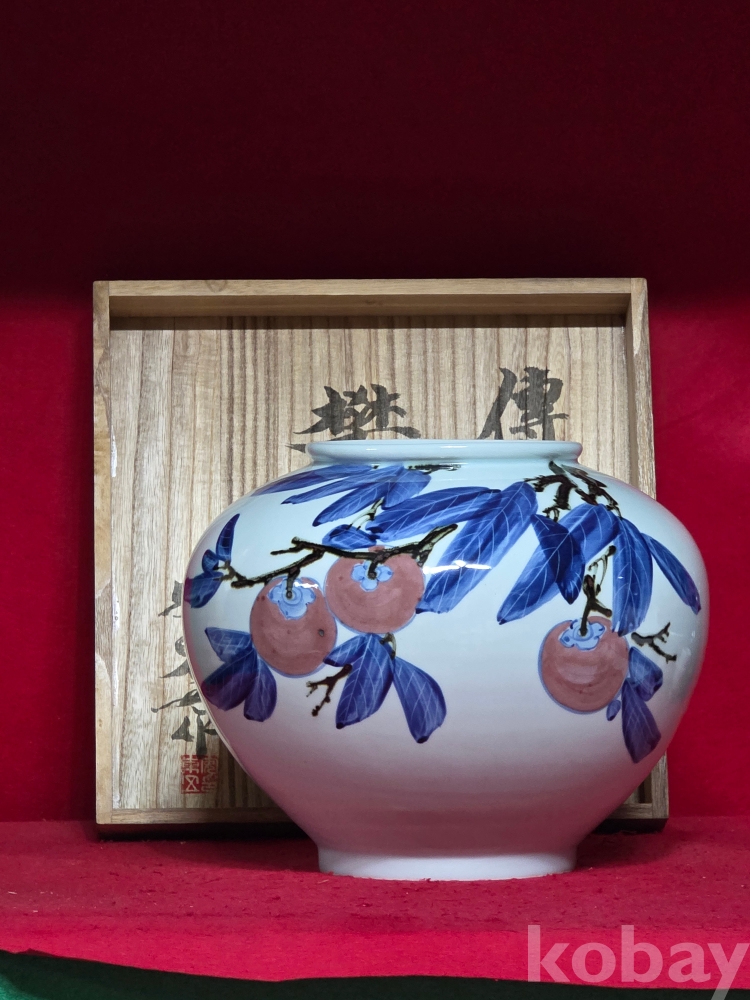 인간문화재 호산 안동오 선생님의 청화백자 철화 진사채 감 호 입니다