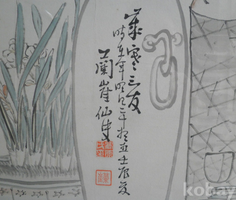 2.화병의 명문 : 세한삼우 시재년 명치20어5 임진하(1892년 여름)