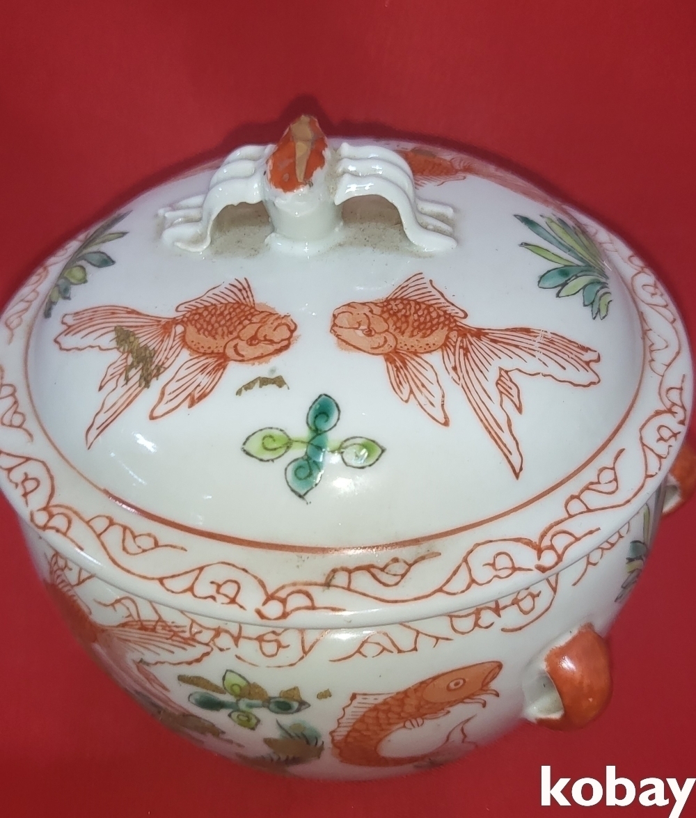 강희연제 홍채 어문(魚紋) 사이(四耳)유개 합입니다,