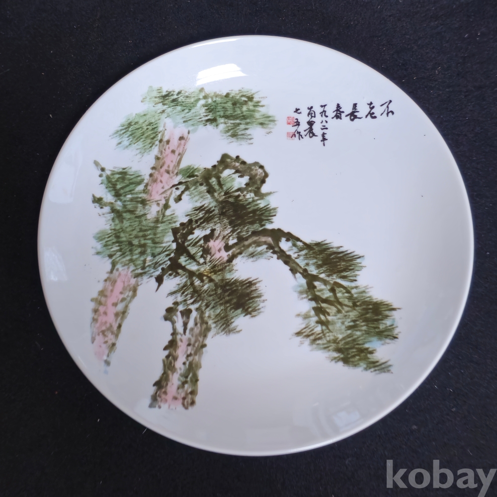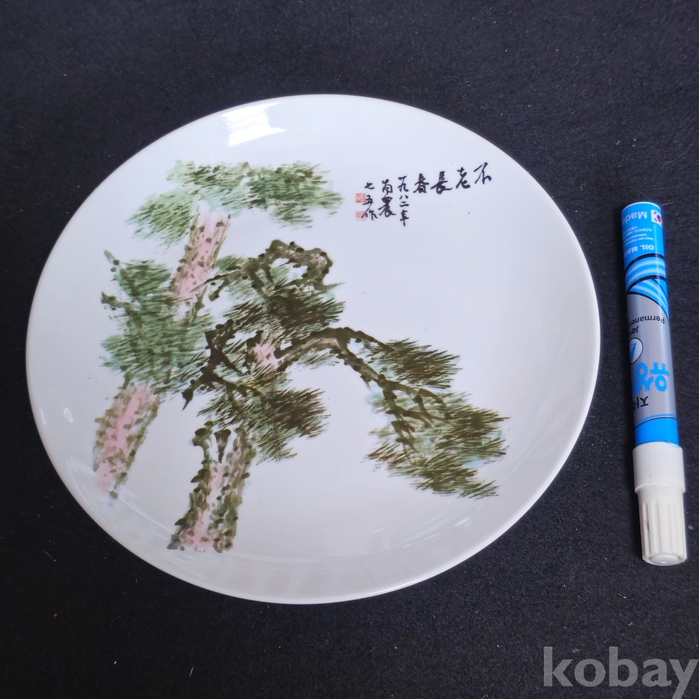 (((도자기접시))) 오래전 남농화백의 소나무 (松) 그림이 멋진 도자기 접시 (밀양도자기)