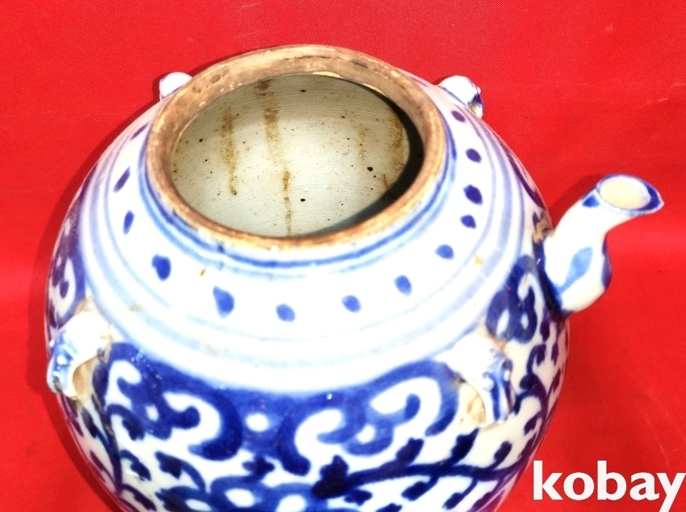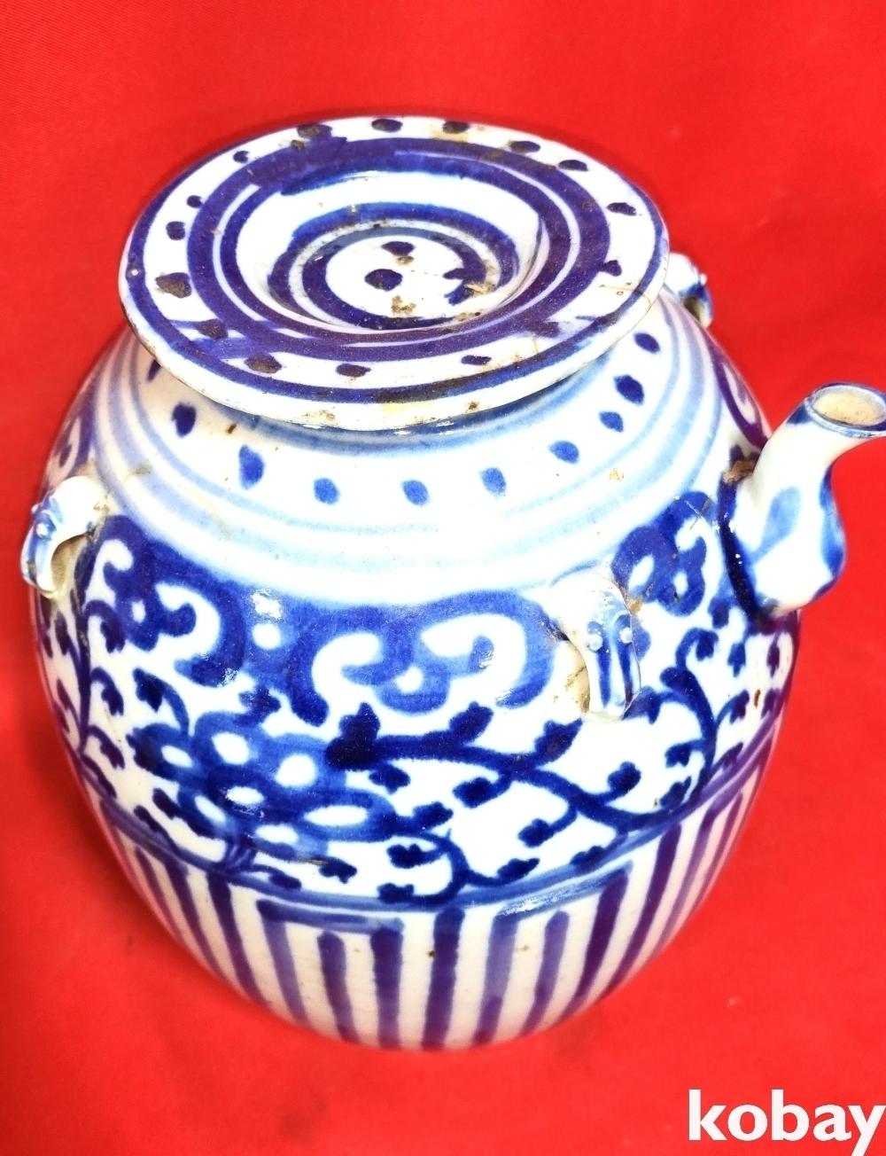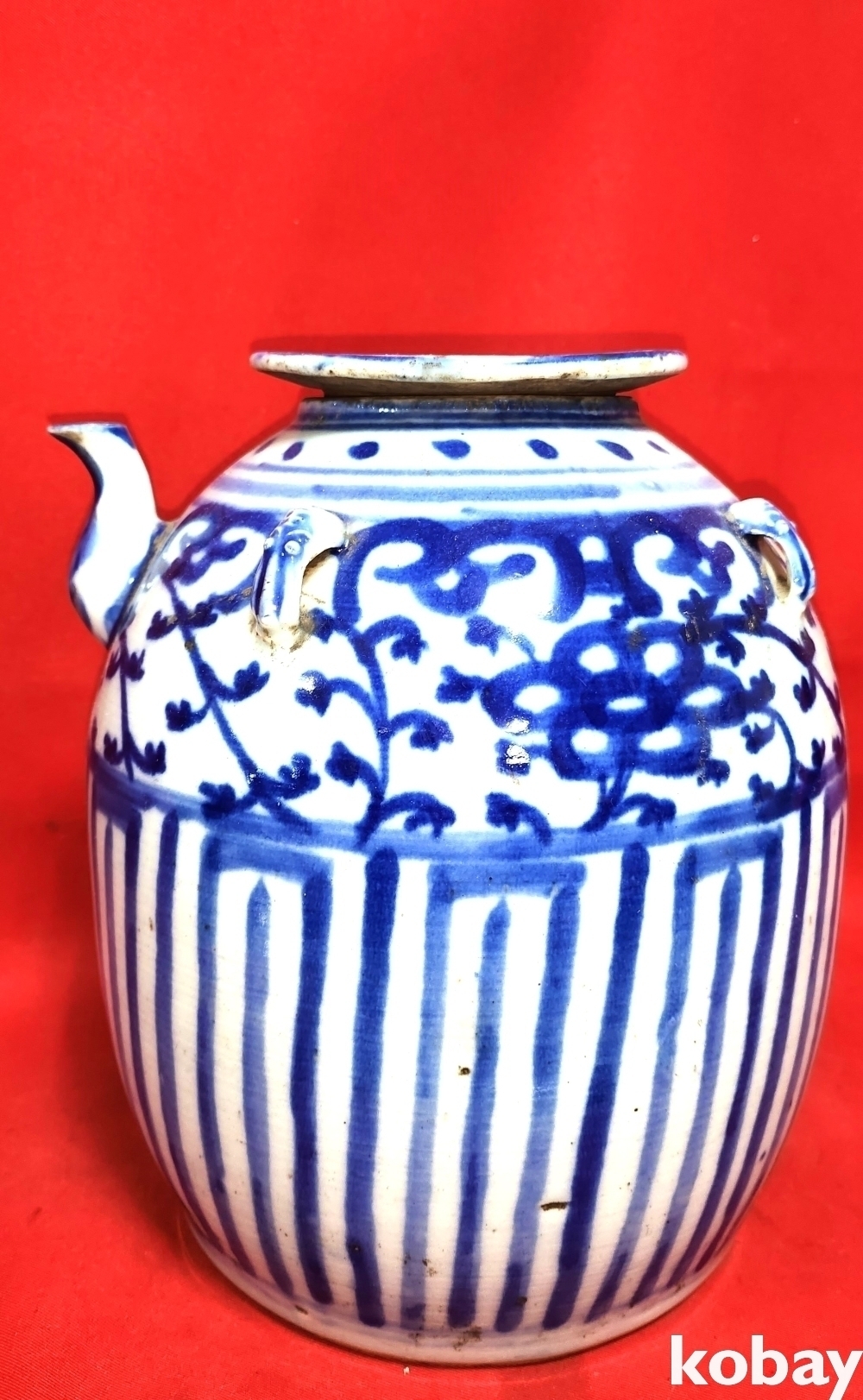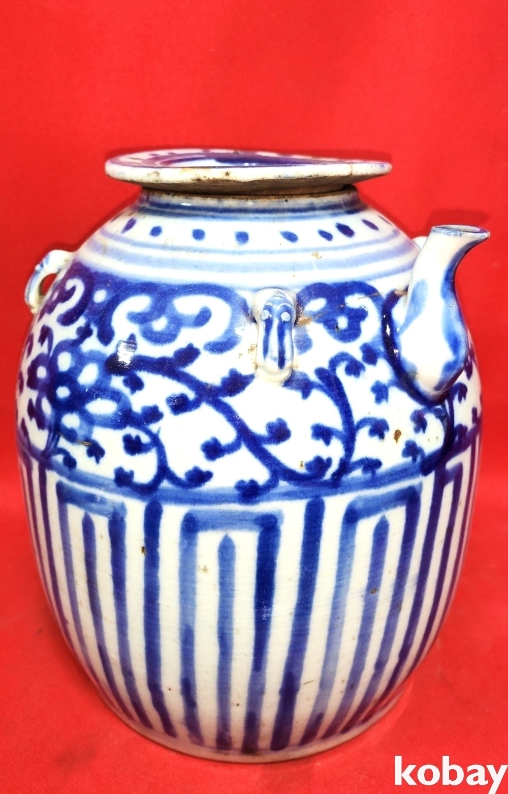 청나라 시대 화훼(花卉) 문양 사이(四耳) 주전자입니다,