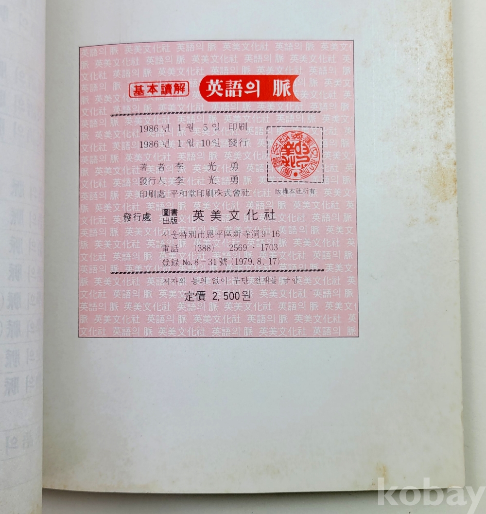 물 품 명 | 기본독해 '영어의 맥' : 고교기본독해 영어의 초석 시리즈 (7) / 1986년 초판 / 이광용 / 영미문화사 |