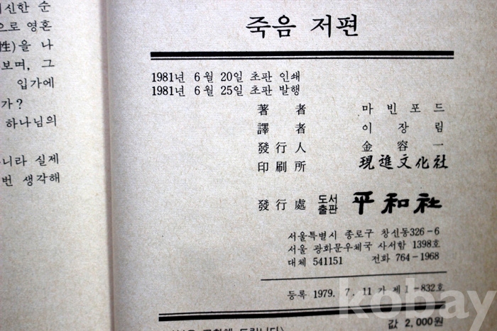 죽음 저편 - 마빈 포드 著. 이장림 譯 / 1981년. 평화사 발행