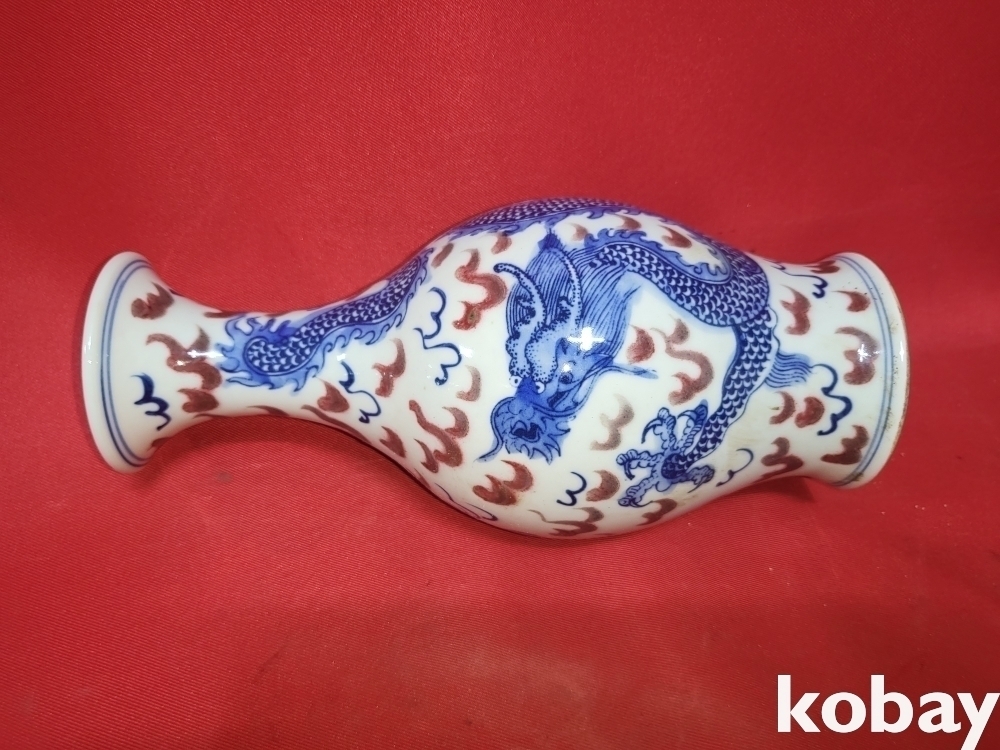 대청강희연제 청화 유리홍 운용문양 병입니다,