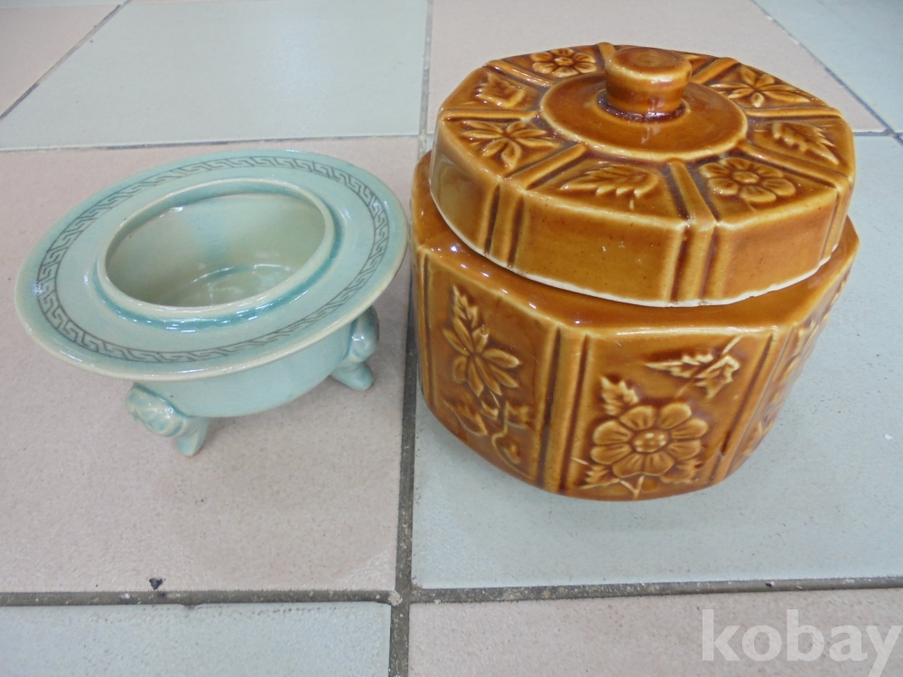 진황자 8각과 뚜껑에 양각꽃무늬 돌아가고 예술성있게 고급으로만든 진황자 합과 연청자에 침통화로겸 향로도되는 고운침통화로