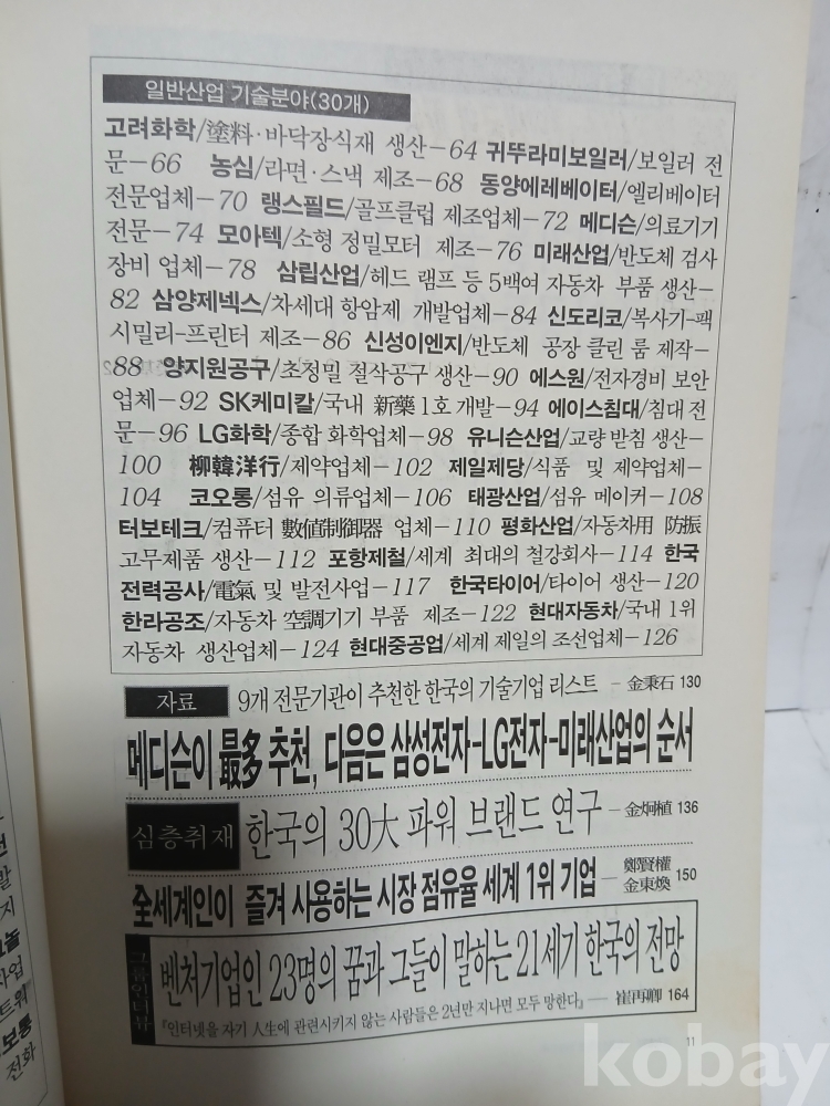 당시 한국의 산업기술력 분야별 분석, 해당 기업 소개