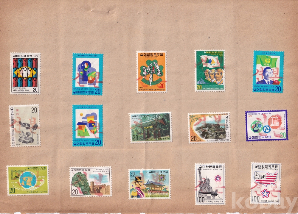 - 중복 되는 우표 없이 15장 견본 우표가 부착되어 있습니다.