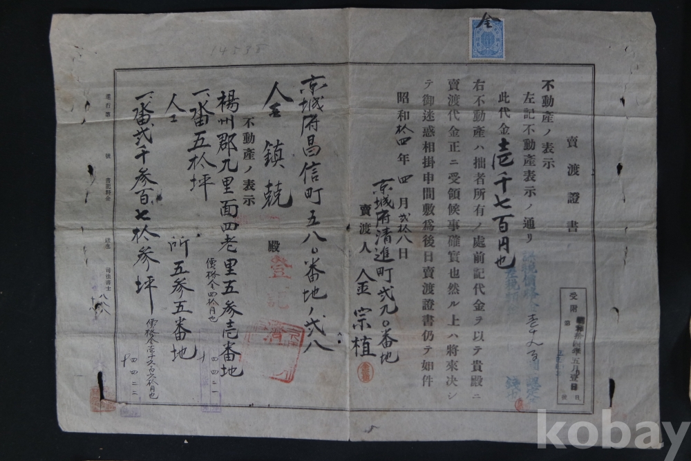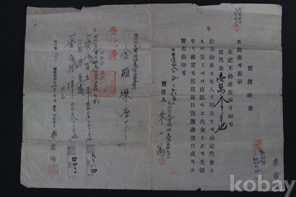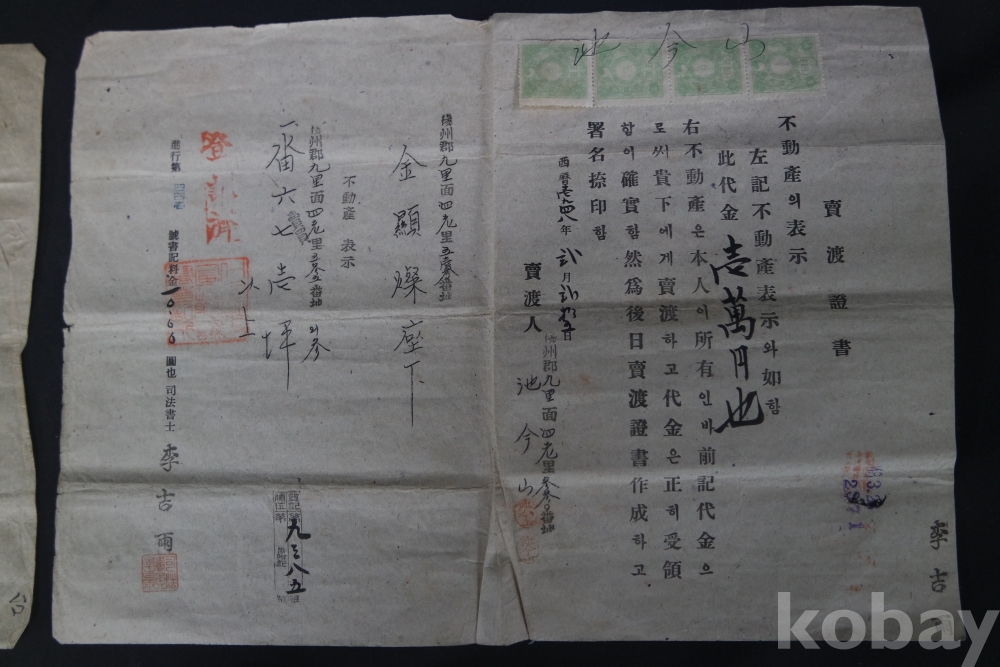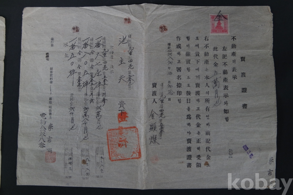 1939년 답 매도증서 1매, 1947~49년답 매도증서 4매,