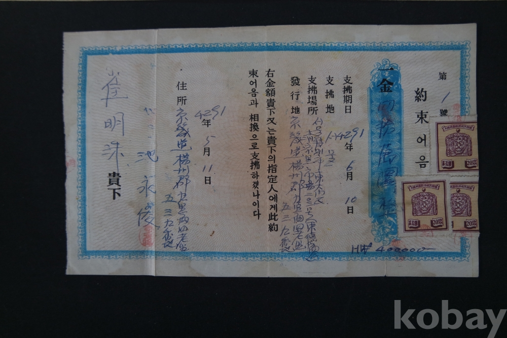 양주관련자료 일괄로 대부분 수입인지가 첨부되어 있다.