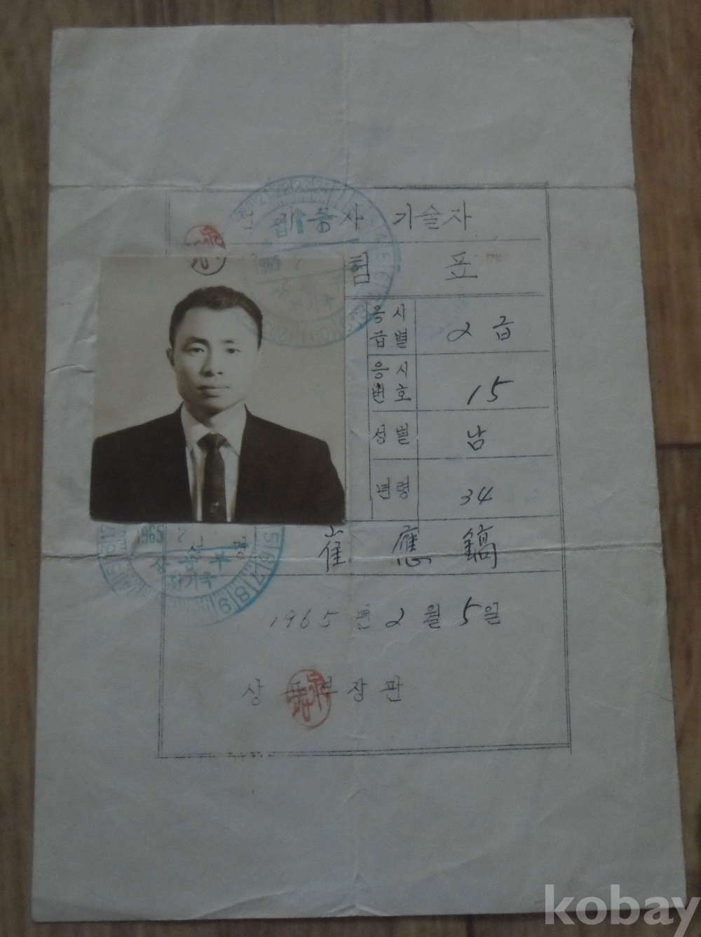 1965년 상공부 전기공사기술자 2급 응시 수험표
