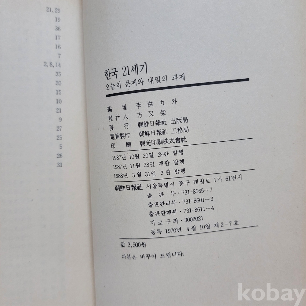 [천원경매] 오늘의 문제와 내일의 과제 (한국의 21세기) ; 조선일보사 발행