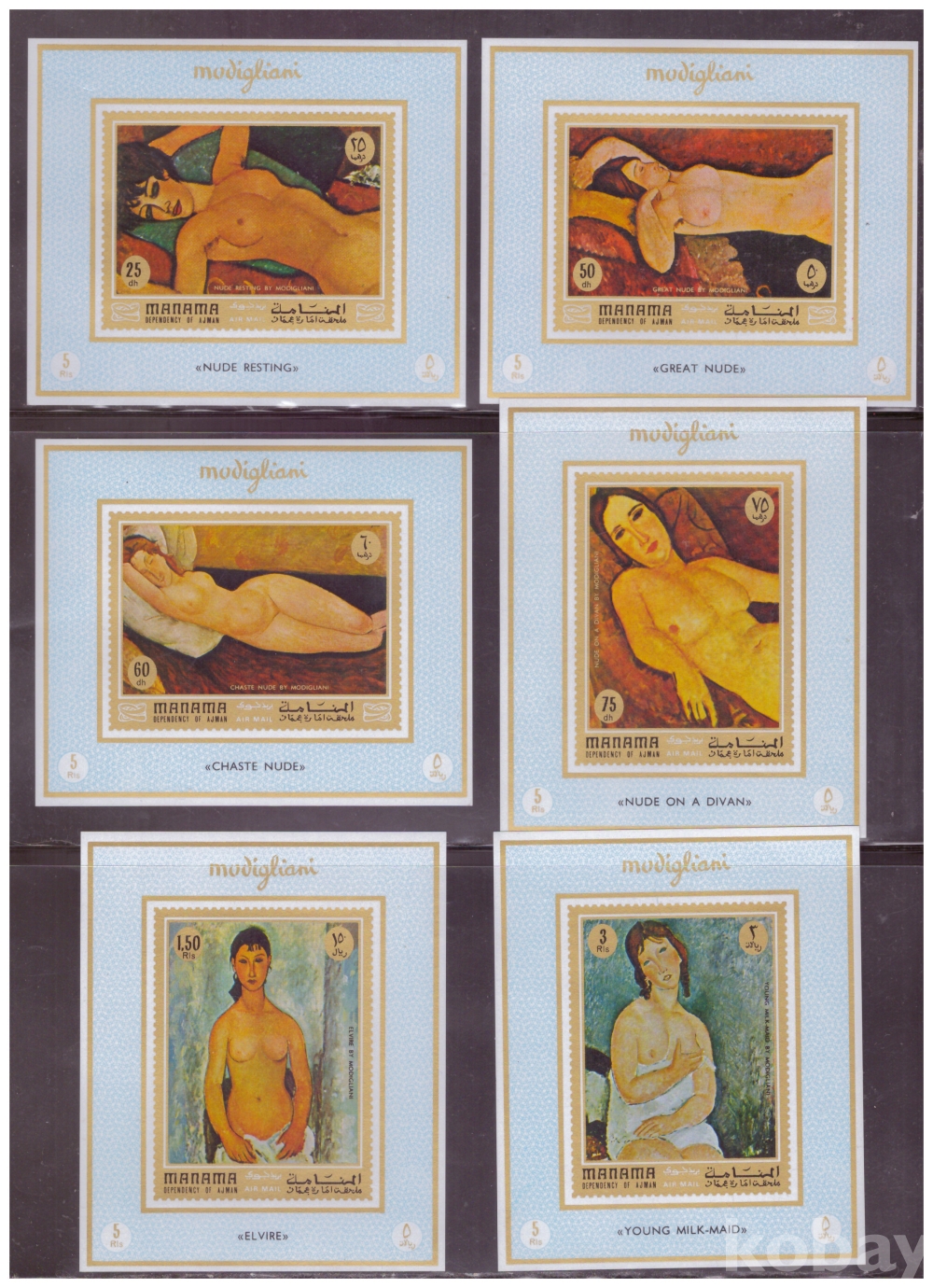 (누드명화) Manama (마나마) 아메데오 모딜리아니의 누드화 6완 s/s(무공) MNH
