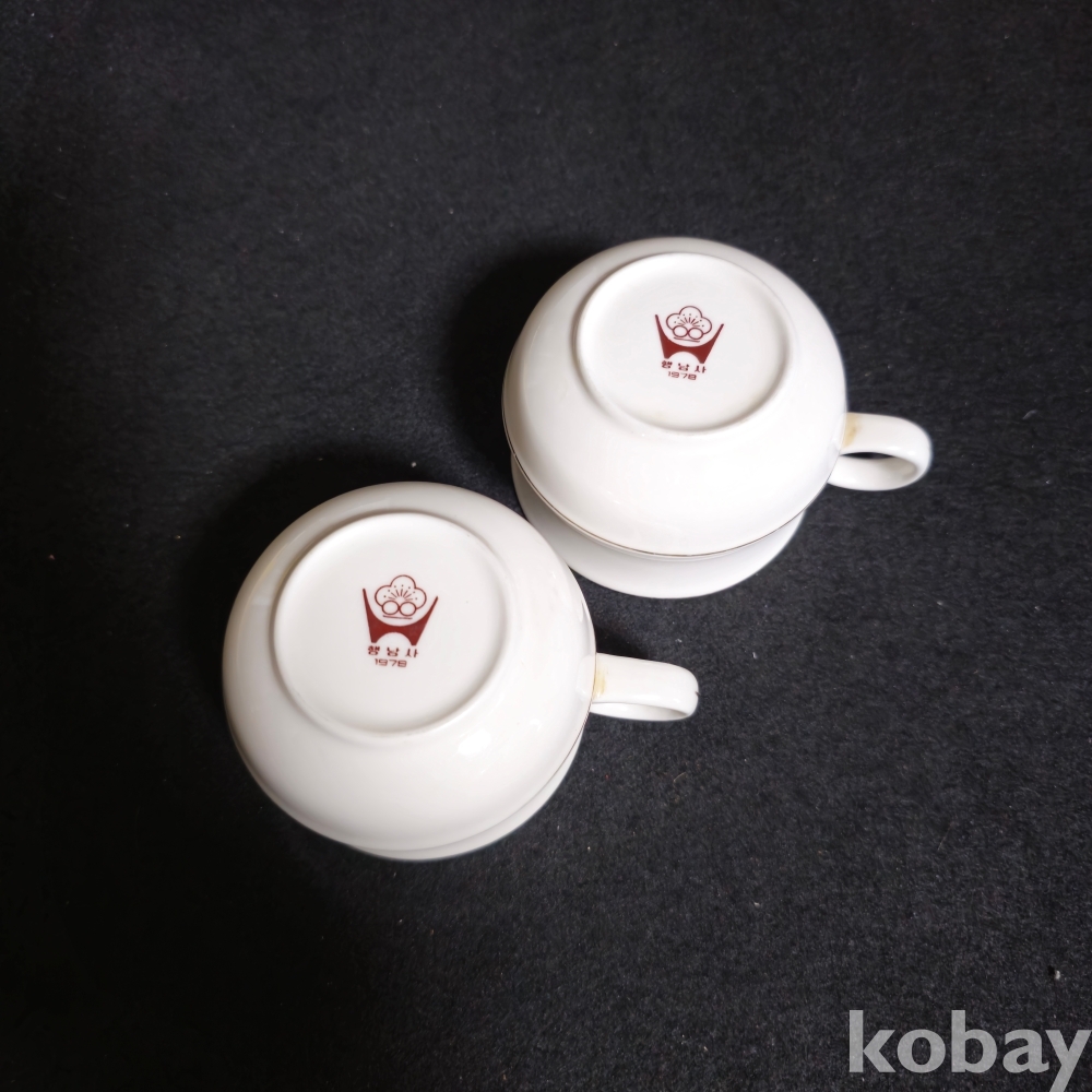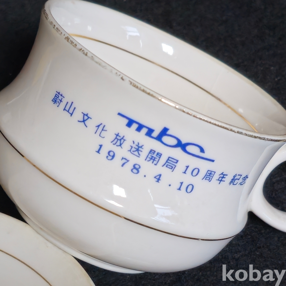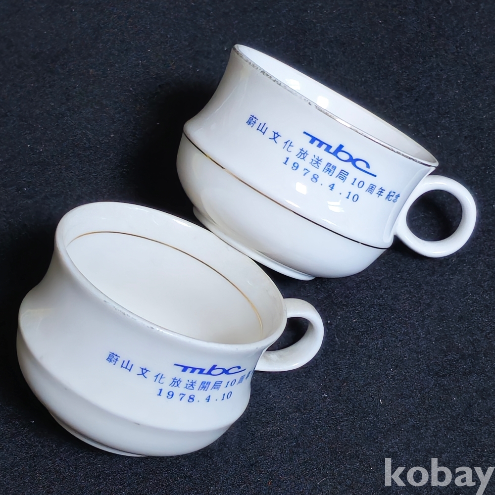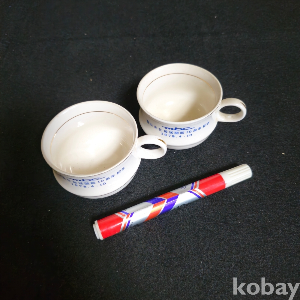 (((근현대사자료))) mbc 蔚山 문화방송 개국 10주년기념 도자기커피잔 2종 (1978.4.10)(행남사)