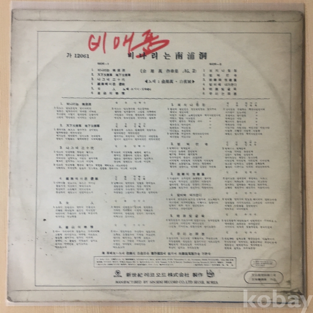. 가요음반 대부분은 휘어짐이나 손상을 방지하기 위해 무지싱글자킷을 하나 더 사용하여 보관되었던 음반들입니다.